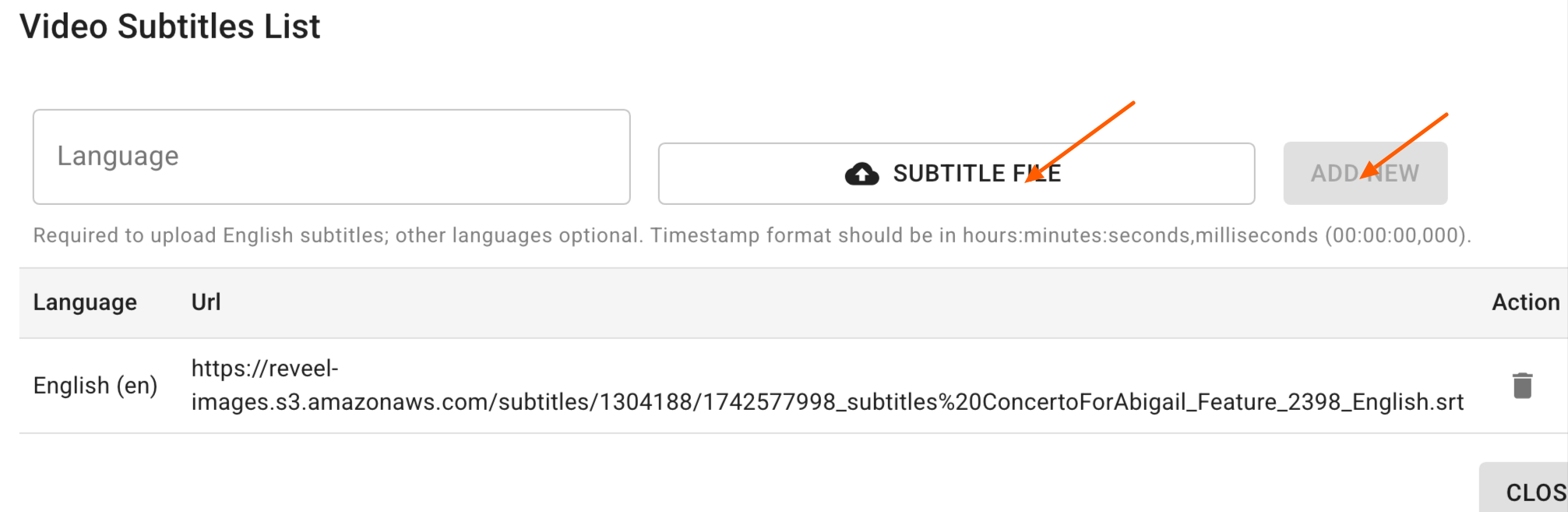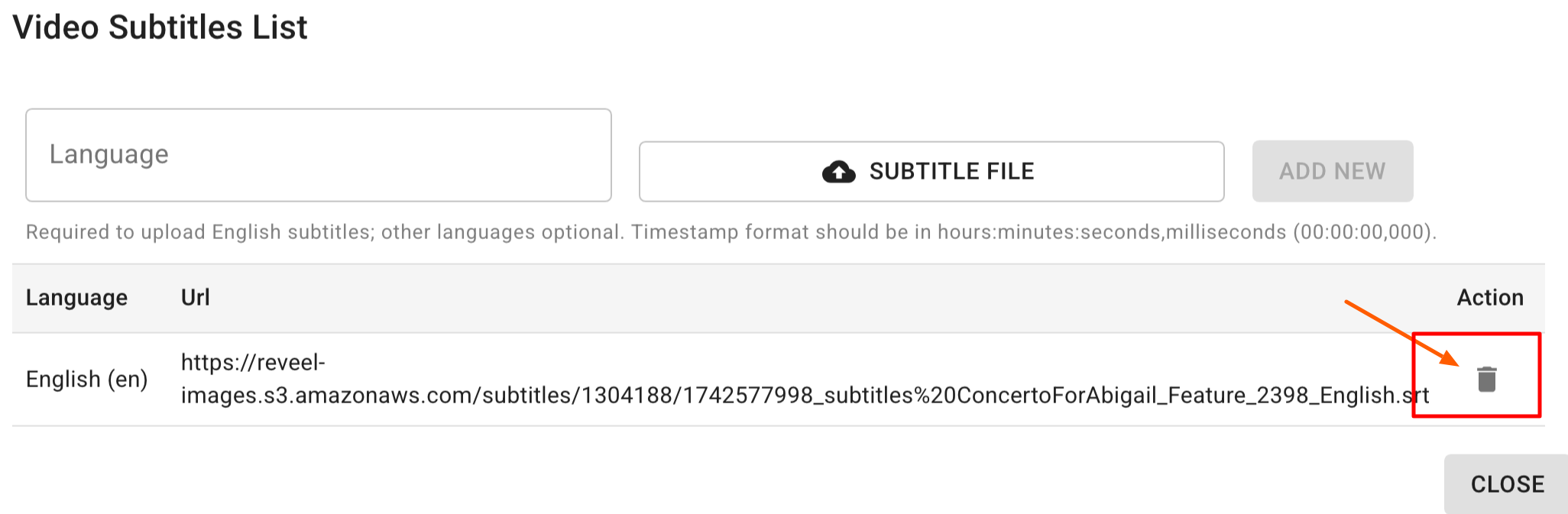 To edit, remove or add a new .srt file, be sure to login to the portal, go to the film for .srt