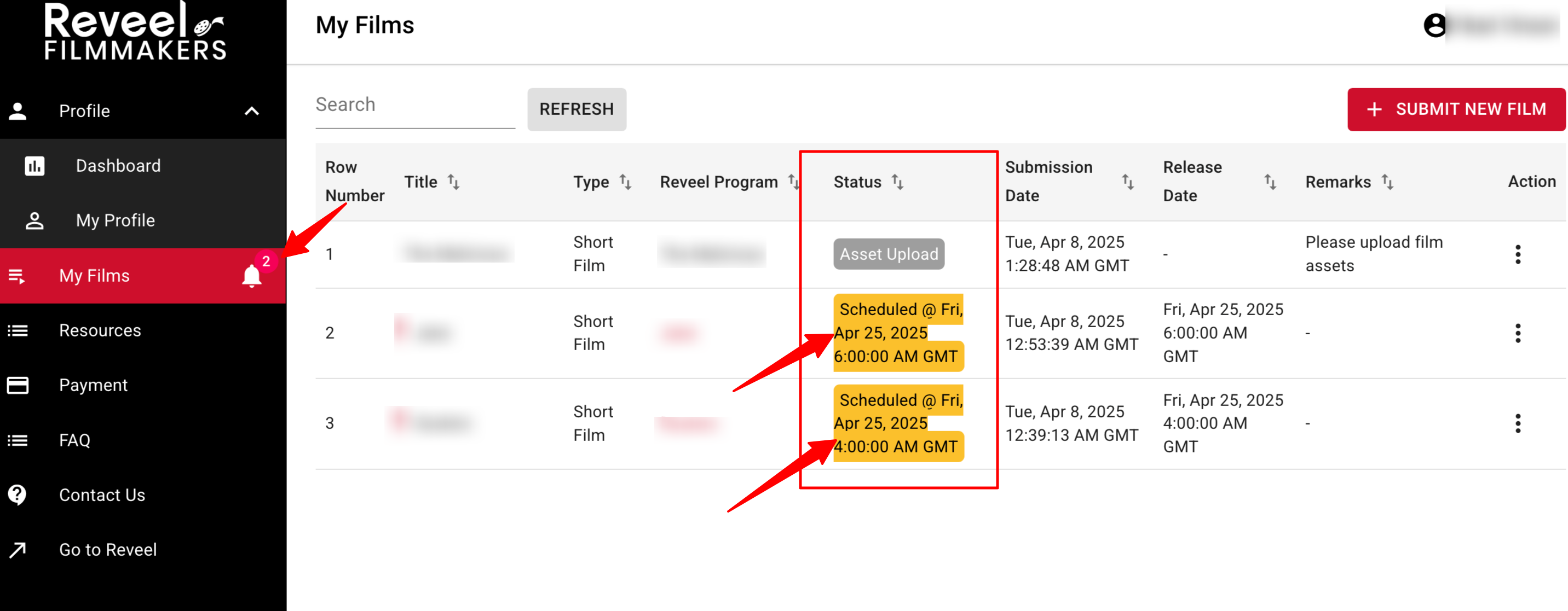 Upon approval, you will see the notification in the dashboard that your film is already scheduled.